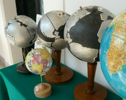 Here's a picture of those same reconstructed Hilgenberg globes I took at the 2011 Interdisciplinary Science Workshop on “The Earth Expansion Evidence”, held at Erice in Italy. Hilgenberg's globes are at the back, while a small version of a more modern reconstruction (one of Klaus Vogel's famous "globe-in-globe" reconstructions) is at the front for comparison.