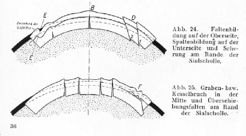 Here’s two of the several diagrams Hilgenberg used to illustrate the mountain building effect of expansion in his 1933 book.