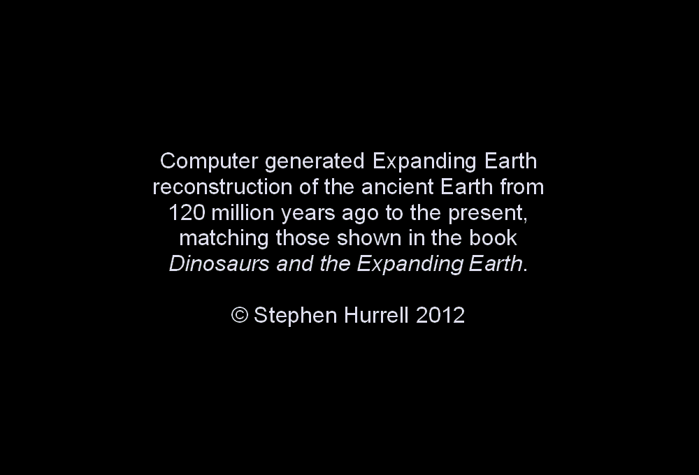 These expanding Earth animations show the expanding Earth from 120 million years ago to the present over the Atlantic, Africa, India, Australia, Pacific and America to match the reconstructions shown on page 118 to 123 of the third edition of my book Dinosaurs and the Expanding Earth.