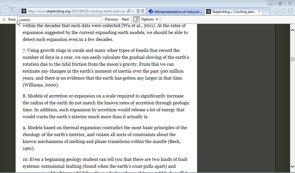 Q. You stated in your book that the mass increase of the Expanding Earth was due to cosmic material hitting the Earth. The most common estimate I have found is 30,000 tonnes of cosmic dust per year. Are you really trying to base the entire Expanding Earth “Theory” on such a small mass?